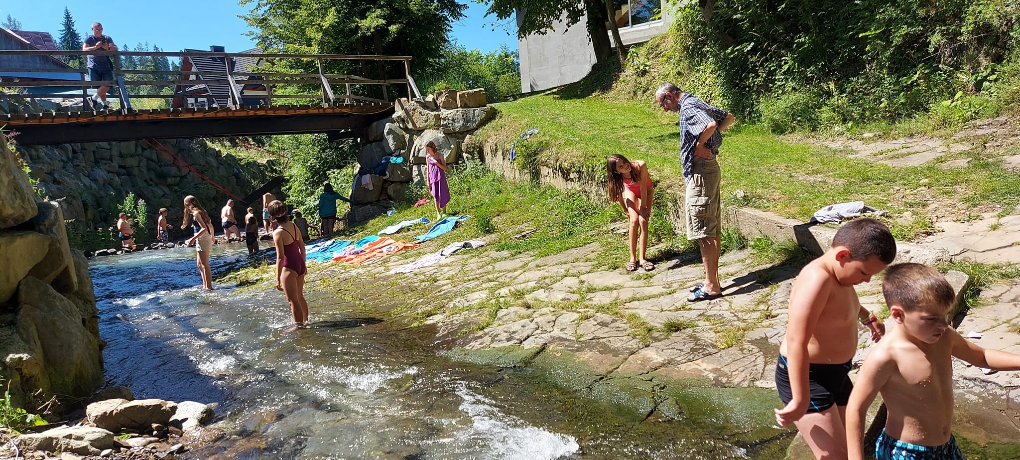 W przerwach uczniowie biegają za piłka, rzucają ją do kosza, odbijają przez siatkę, moczą nogi w strumyku, gimnastykują się, bawią się z psem….