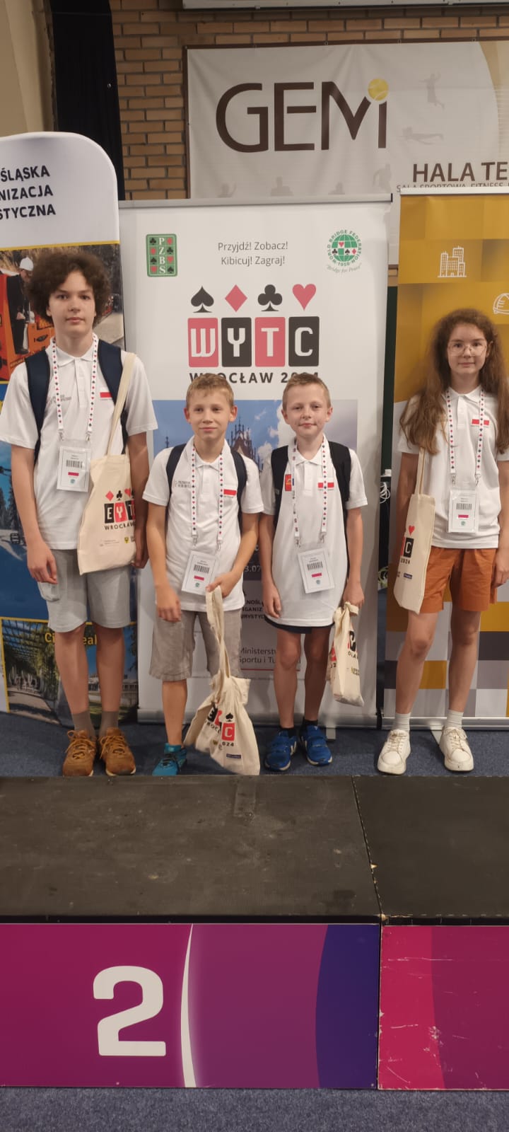 Nasi uczniowie grają w brydża dopiero 2 lata. Tymczasem pojawiła się okazja do startu w międzynarodowych zawodach dzięki temu, że Mistrzostwa Juniorów zawitały w tym roku do Wrocławia. Dzieci wykorzystały tę okazję nad wyraz skutecznie. Team WZBS U16 zakończył kwalifikacje na 24 miejscu na 30 rywalizujących teamów z całego świata, by potem zająć 8 miejsce wśród teamów, które nie weszły do finału.