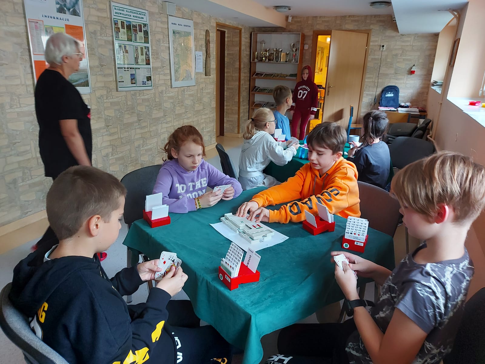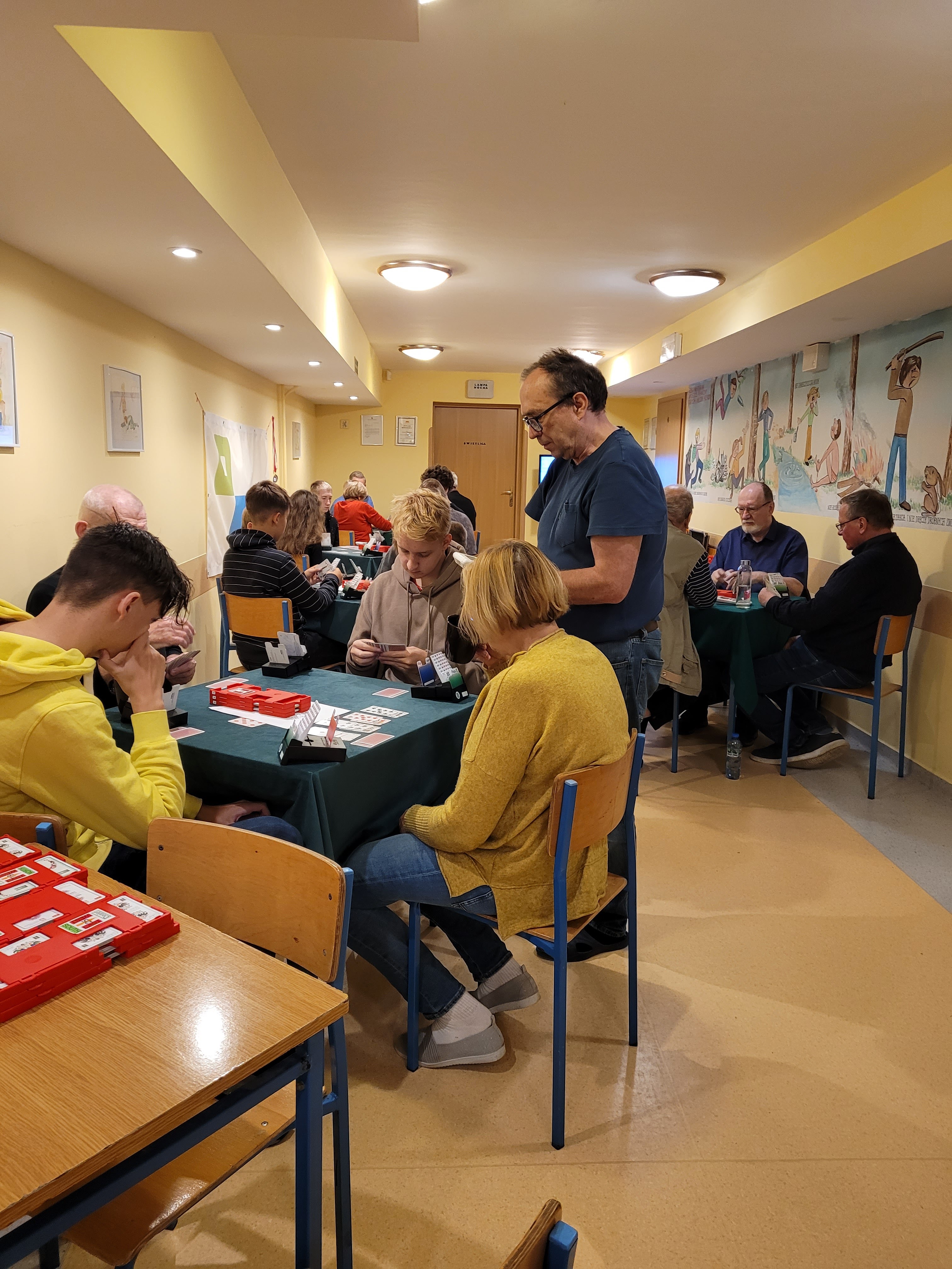 W dniach 5/6.10.2024 schronisko młodzieżowe „Sarenka” w Kobylnicy gościło kolejną grupę młodych adeptów brydża. Spotkanie rozpoczęliśmy turniejem dla młodych i starszych mieszkańców Swarzędza i okolic. Przybyło 10 par i rozegrało 27 rozdań. Wyniki tutaj. W tym samym czasie w drugiej sali ćwiczyli uczniowie IV klasy ze Szkoły Podstawowej nr 4 im. Jana Brzechwy w Swarzędzu, przygotowując się intensywnie do udziału w pierwszym turnieju minibrydża. Zmagania przy stoliku przerwała zabawa w chowanie i szukanie skarbów ukrytych w pobliskim lesie. Po odzyskaniu sił przystąpiliśmy do realizacji kolejnych zadań: grupa początkujących zagrała swój pierwszy turniej minibrydża, zaś zaawansowani szkolili się w zakresie łączenia szans stosując zasady bezpiecznej rozgrywki. Dzień zakończył wieczór gier stolikowych, do których zaliczyliśmy również ping-ponga na prowizorycznie przygotowanym stole tenisowym.