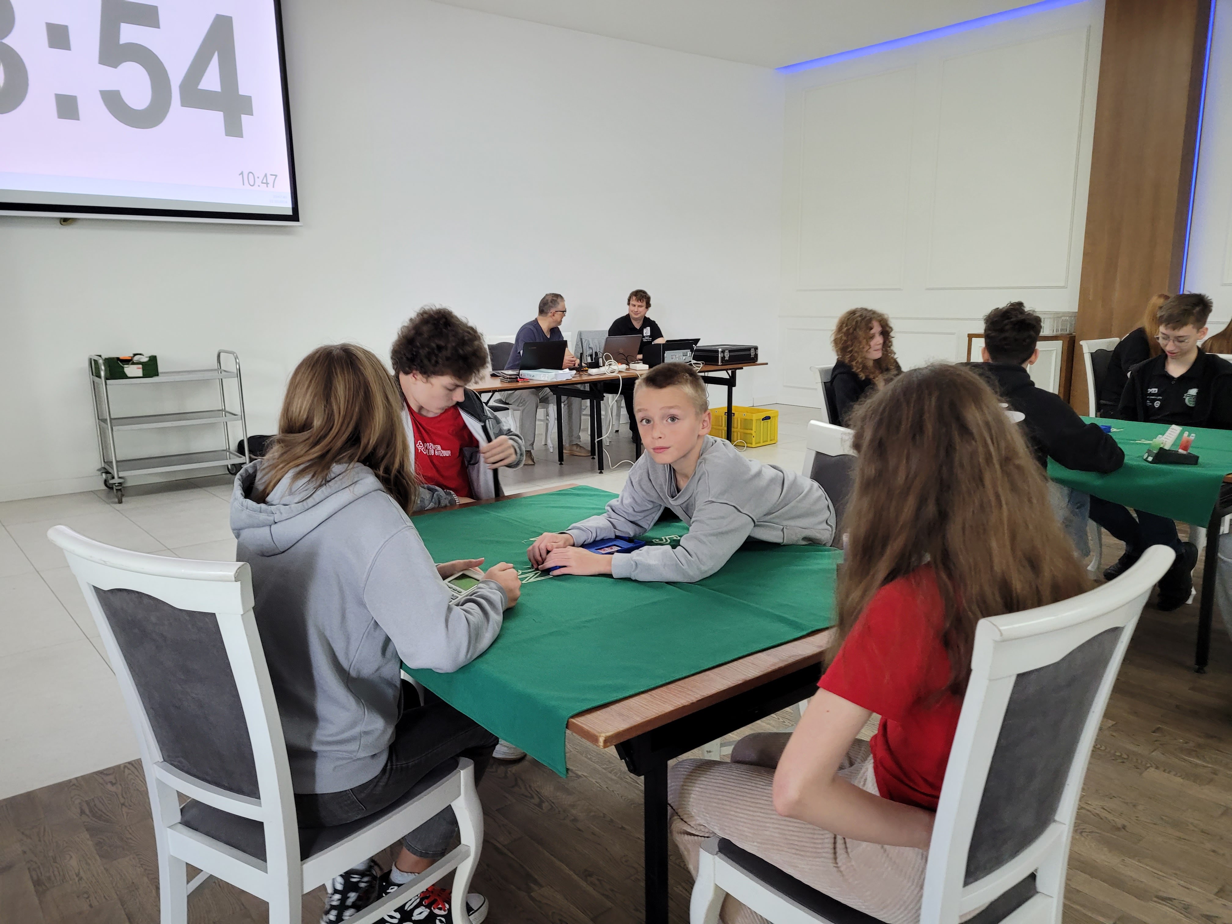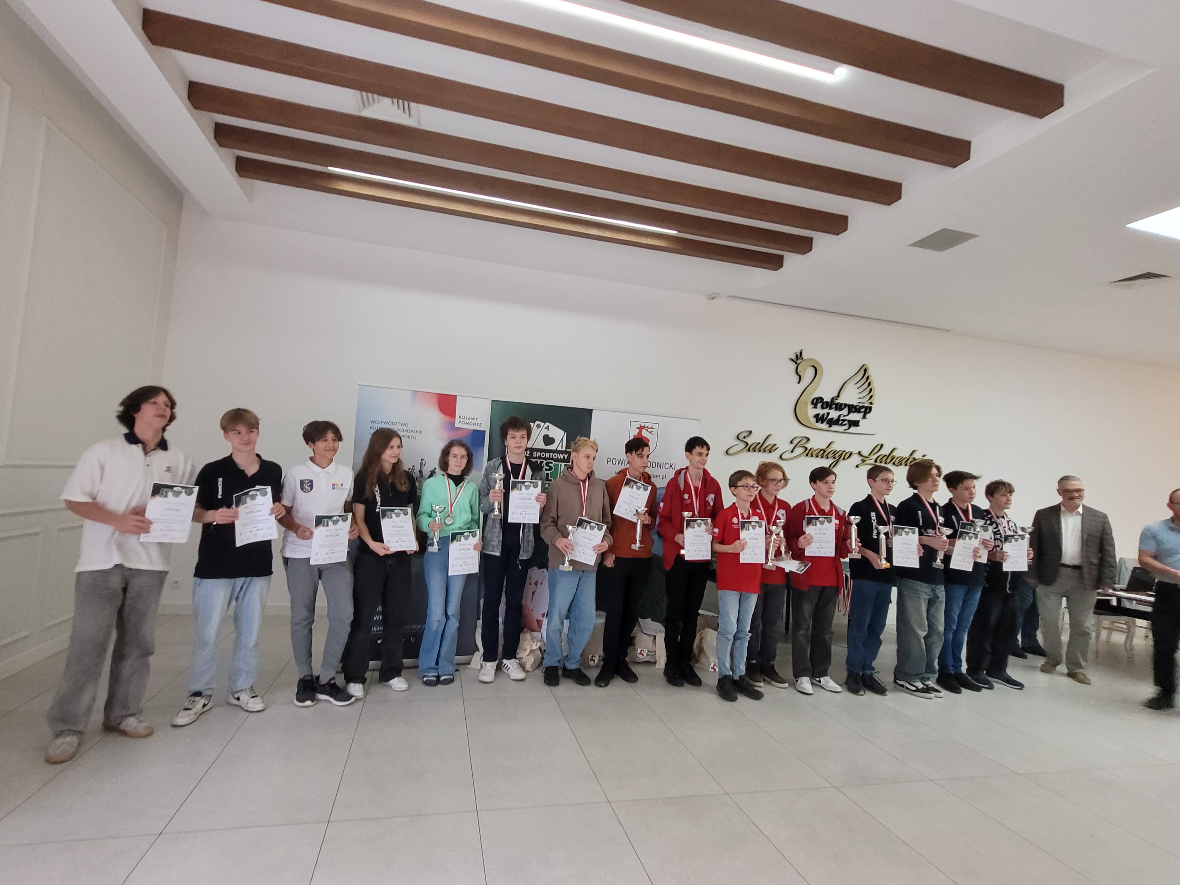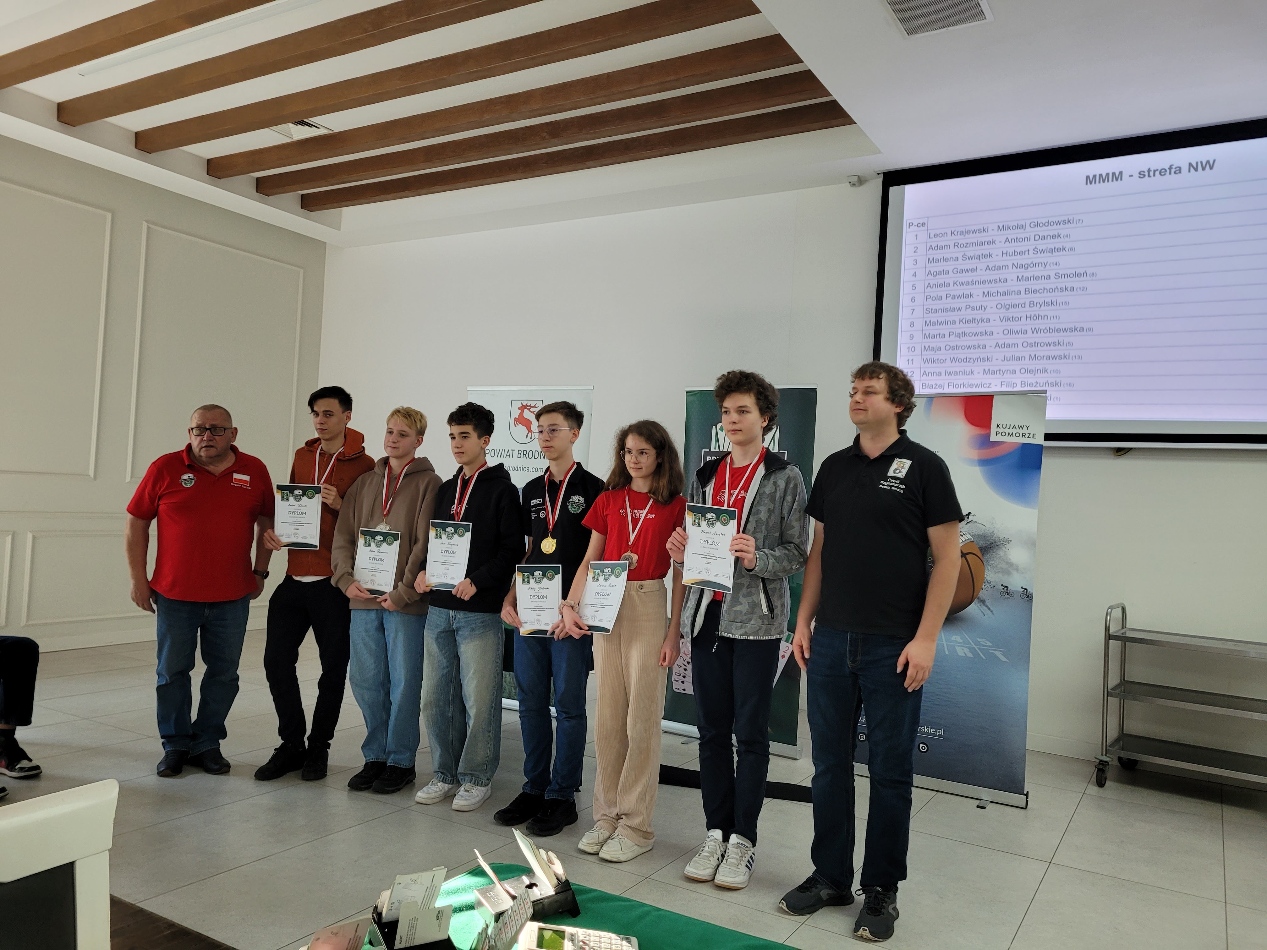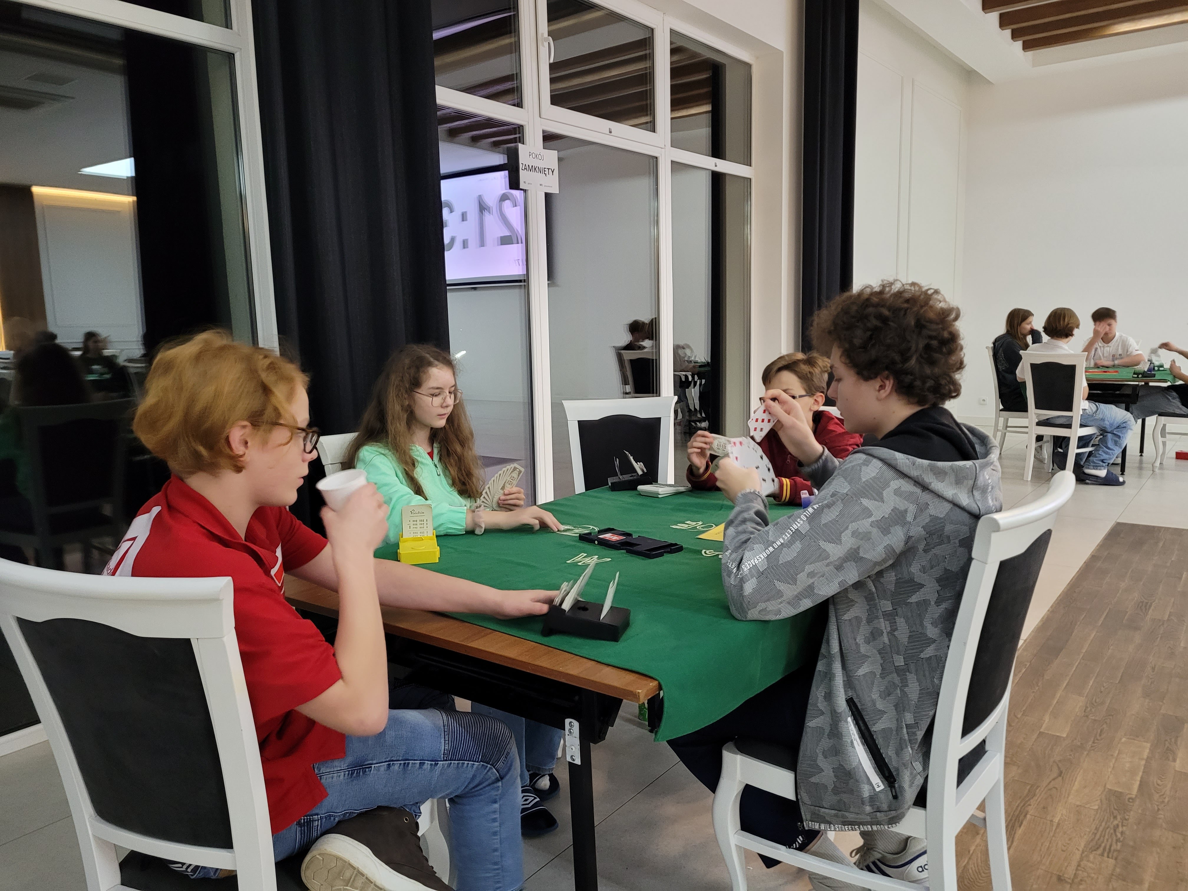 Co więcej, w Mistrzostwach Polski Młodzików 13-15 lat, które następowały bezpośrednio po MMM strefy NW Marlena i Hubert Świątek – uczeń i uczennica klasy VIII SP nr 4 w Swarzędzu wraz z Adamem Rozmiarkiem – uczniem III LO w Poznaniu i Antonim Dankiem – uczniem VII LO w Poznaniu wywalczyli srebrny medal w kategorii teamów. To dla nas spore wyróżnienie, bo nie należeliśmy do faworytów i daje nam mocny impuls do dalszej pracy. Oprócz solidnej porcji brydża sportowego w Wądzyniu z przyjemnością można było zaobserwować integrację środowiska nastolatków. Młodzież doskonale się bawiła, a my pozazdrościliśmy dużym klubom, w których życie towarzyskie kwitnie. Nasza czwórka była raczej odizolowana i dało to nam trochę do myślenia. Musimy popracować nad współpracą z innymi klubami młodzieżowymi. Stąd pomysł wspólnego wyjazdu zimowego z Dąbrówką, na który już się umówiliśmy.
