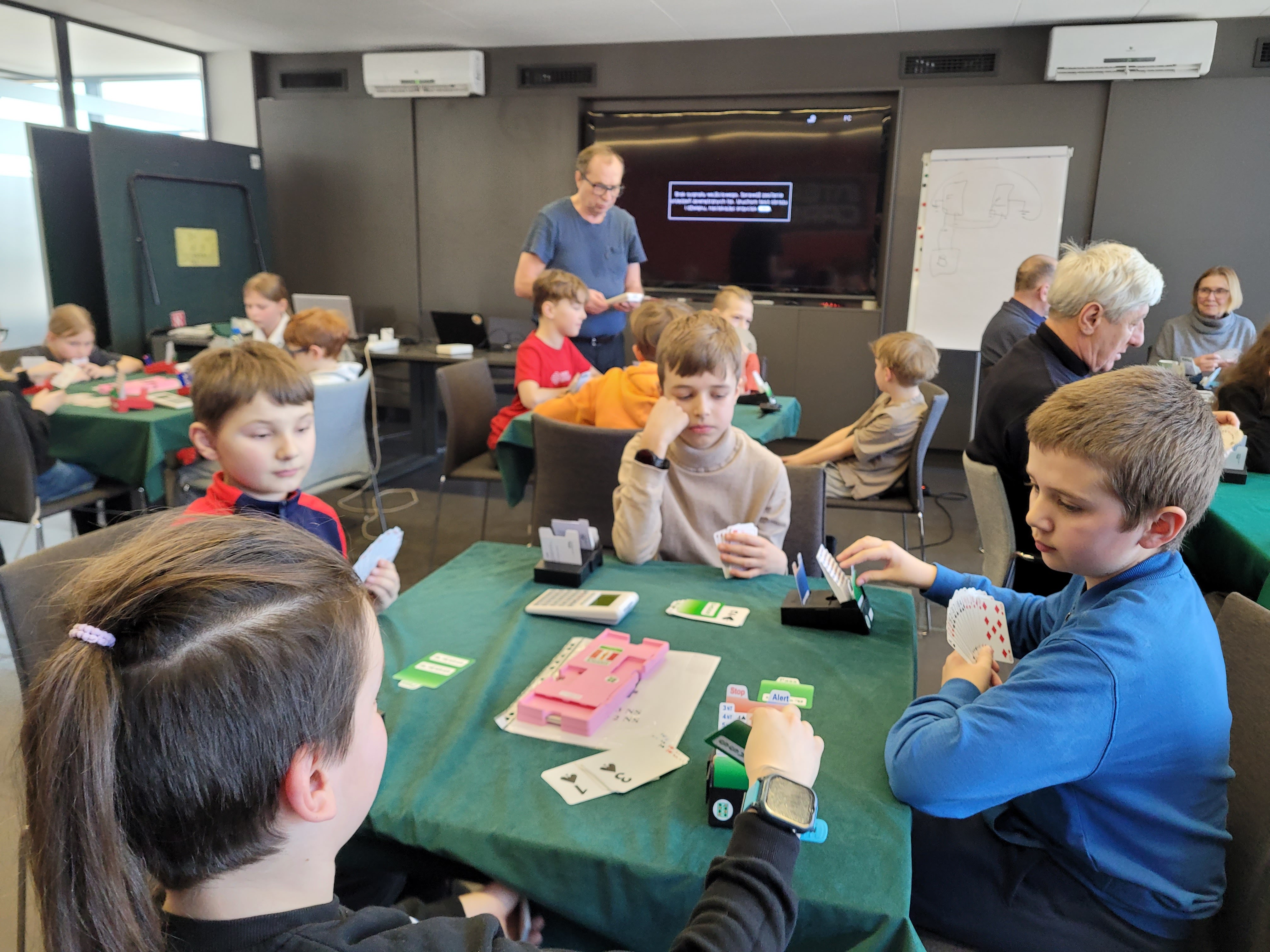W sobotę 22 lutego 2025 roku w sali szkoleniowej Inter Cars spotkały się 3 pokolenia brydżystów ze Swarzędza i okolic. W dwóch niezależnych turniejach stanęli do walki najmłodsi ( 16 uczestników w wieku 8-10 lat) oraz starsi (czworo w wieku 13-15 lat oraz ośmioro 18+). Młodsi rozegrali 12 rozdań, starsi w tym samym czasie rozegrali 20. Liczymy, że najmłodsi skorzystają z dobrych wzorców zachowań ich starszych kolegów i dalsza nauka upłynie w coraz poważniejszej i sportowej atmosferze. A starsi członkowie naszego klubu zobaczą nadzieję w tym, że do ich klubu dołączy całkiem pokaźna grupka młodych, z którymi będzie można rywalizować w najbliższej przyszłości.