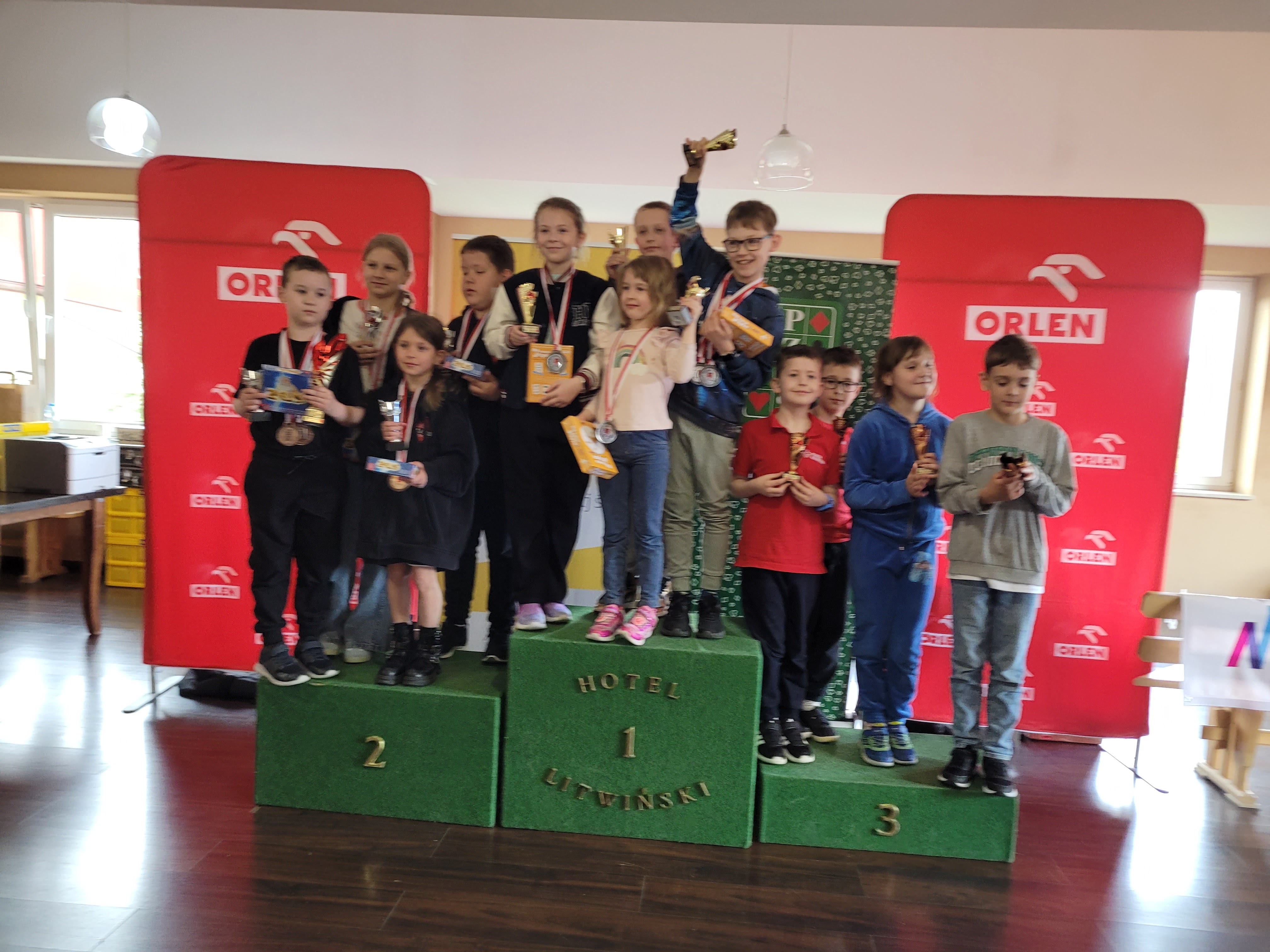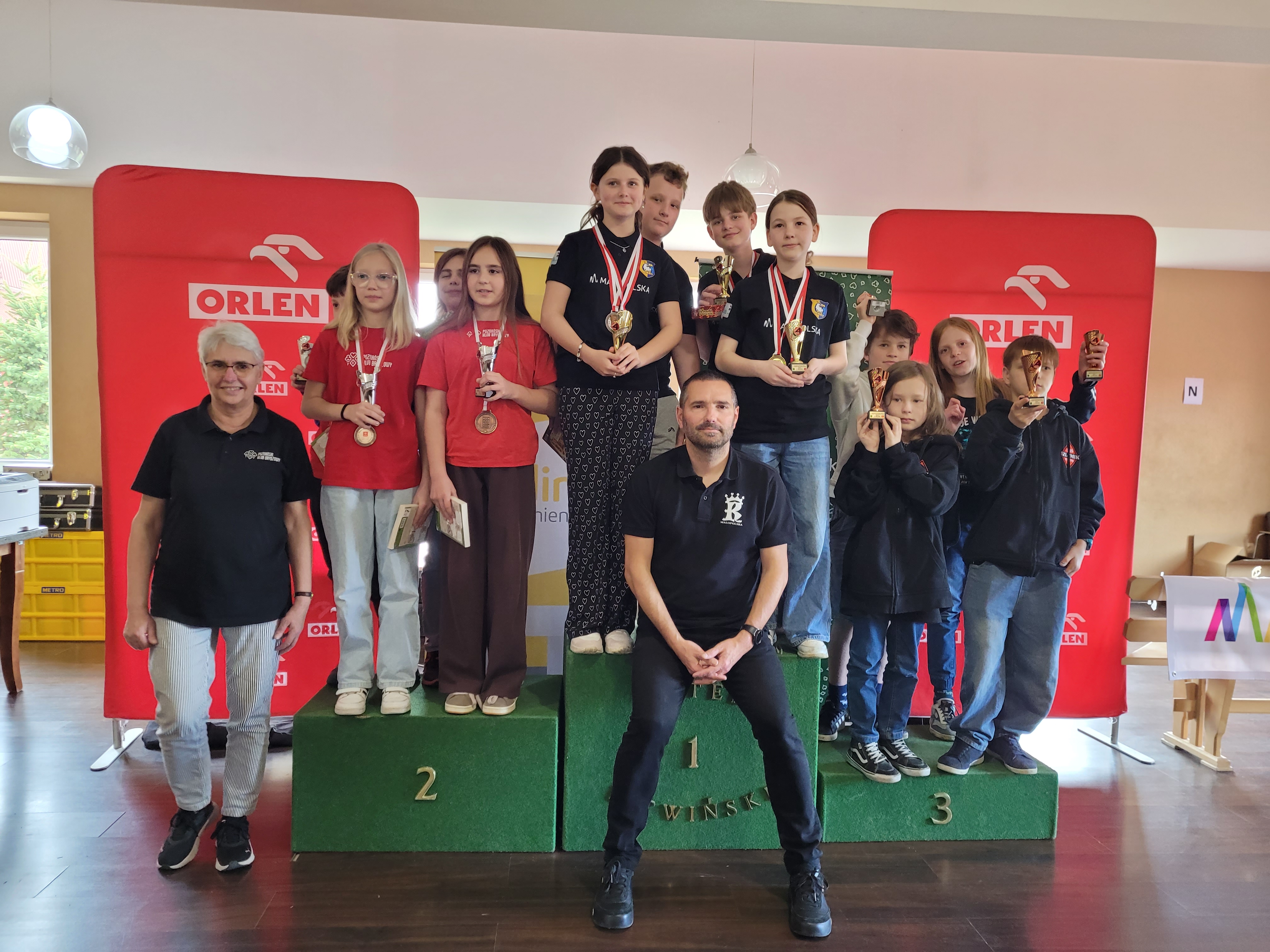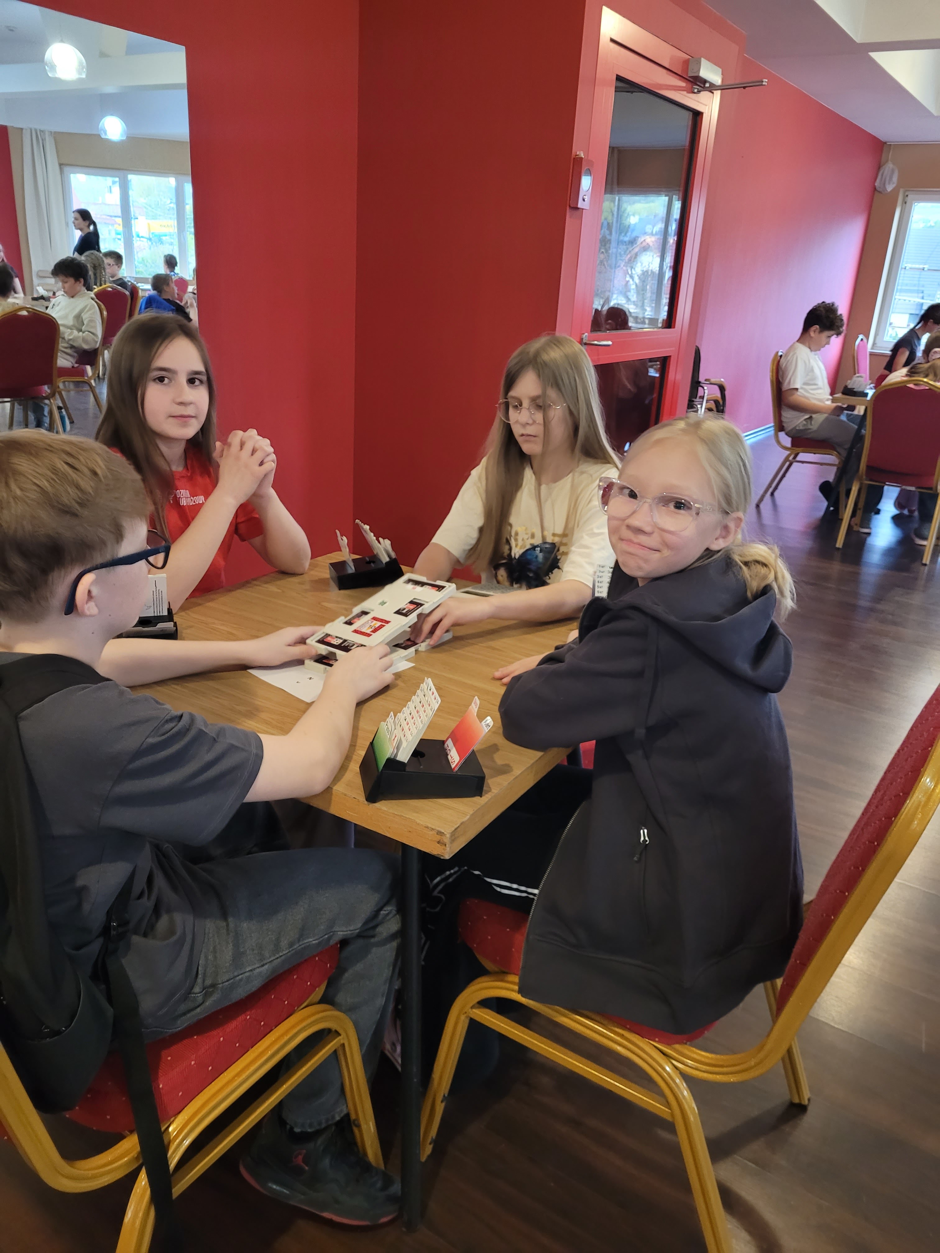 Szczególne podziękowania należą się Elwirze Dobrej Stefańskiej oraz Ilyi Shpuntou, ktorzy pełnili rolę opiekunów. Pan Shpuntou na pewno mocno zapisał się we wspomnieniach naszych młodych zawodników jako uczestnik zabaw w berka, dawca „magicznych piątek” i nauczyciel czarodziejskich sztuczek z kartami. Był też nieoceniony na sali gry czuwając nad rozstawieniem w teamch i rozliczeniach lew w końcowej części turnieju.