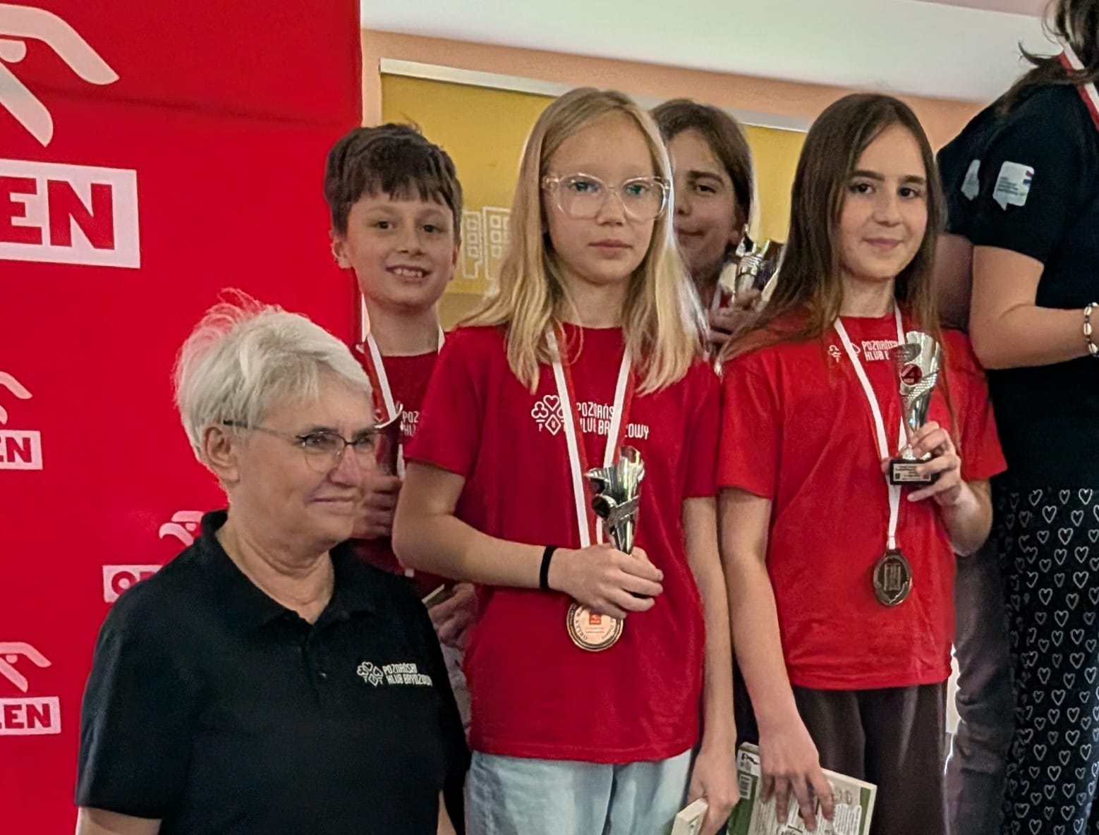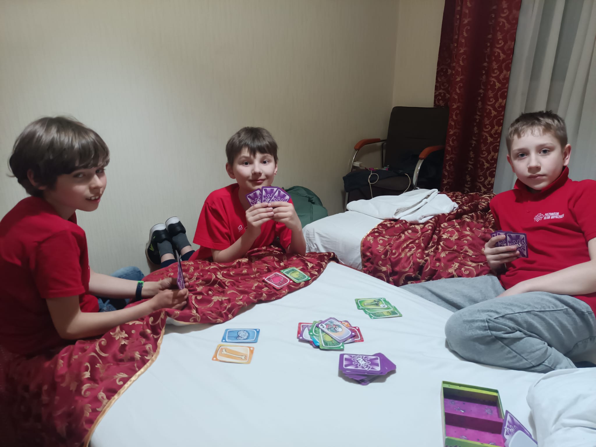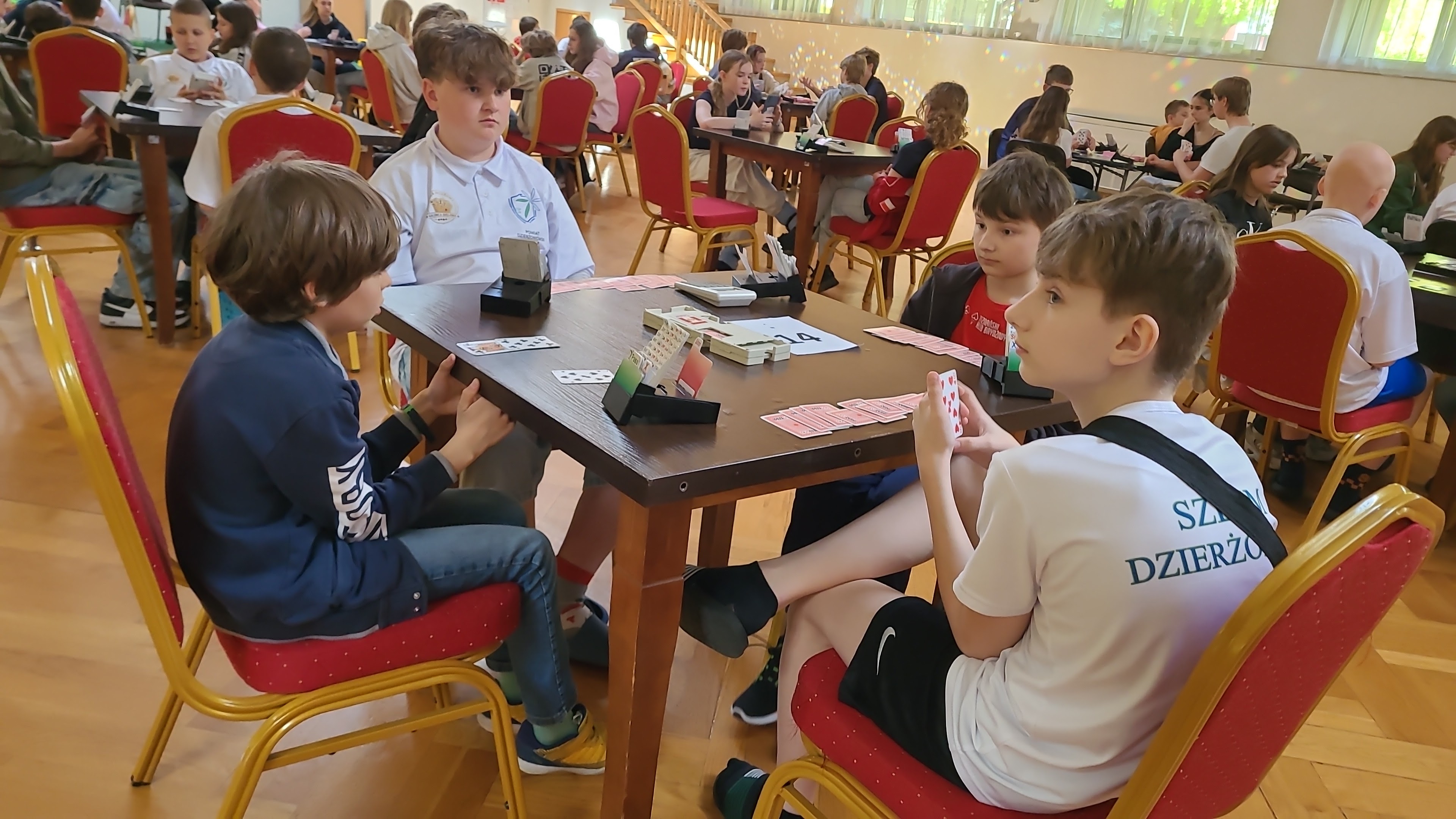 Szczególne podziękowania należą się Elwirze Dobrej Stefańskiej oraz Ilyi Shpuntou, ktorzy pełnili rolę opiekunów. Pan Shpuntou na pewno mocno zapisał się we wspomnieniach naszych młodych zawodników jako uczestnik zabaw w berka, dawca „magicznych piątek” i nauczyciel czarodziejskich sztuczek z kartami. Był też nieoceniony na sali gry czuwając nad rozstawieniem w teamch i rozliczeniach lew w końcowej części turnieju.